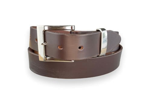 Our brown real leather belt are crafted from full-grain leather, here featuring a sleek silver half buckle—nothing says quality like the real thing.